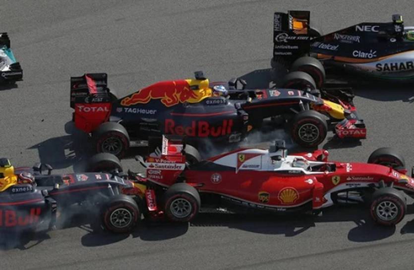"Из-за чего случился первый контакт? Я просто не ожидал, что Феттель замедлится в самый последний момент, я ударил по тормозам, но когда задние колеса блокируются, то ты теряешь контроль над болидом.