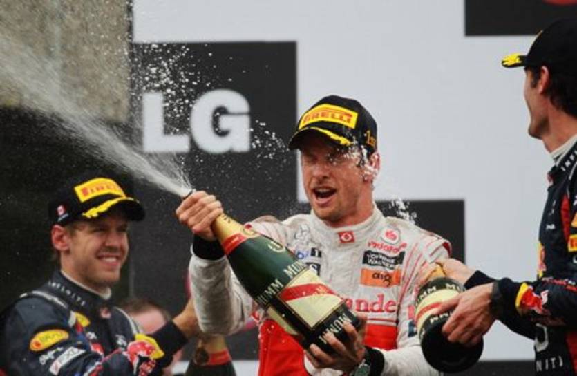 Рестарт пять кругов спустя не продемонстрировал ничего нового. Феттелю без разницы было от кого отрываться, так он сделал и в этот раз с трио Шумахер-Уэббер-Баттон. И пока немец шел к своей очередной победе, борьба за подиум была горячей. Первыми нервы не выдержали у австралийца, который пытаясь обогнать Шуми, допустил ошибку и пропустил британца. А Дженсон, признанный мастер пилотирования в дождевых условиях, вскоре смог опередить и Мерседес. Как оказалось, Шумахер не смог долго сопротивляться натиску австралийца и уступил третье место. Феттель тем временем смог оторваться на 4 секунды и выбрал уж очень бережную тактику. А Баттон, услышав в микрофон фразу "We can win this race", понесся вперед. Не успел немец опомниться, как Макларен уже был в одной секунде, а последний круг Себастьян начинал под невероятным натиском Дженсона. В шестом повороте Феттель допустил ошибку при торможении, выехав на мокрый участок трассы, и его занесло, чем успел воспользоваться Баттон. А у него, как оказалось, железные нервы! Без особых проблем Баттон смог добраться до финиша и одержать свою десятую юбилейную победу в карьере!