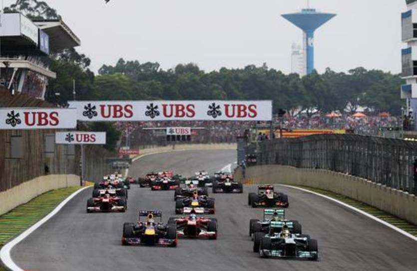 Последняя гонка сезона стартовала при облачной, но сухой погоде. На старте Росберг обошёл Феттеля, а на третье место прорвался Хэмилтон, опередивший Алонсо и Уэббера. Однако в конце первого круга Феттель вернул себе лидерство, а Алонсо вернул себе позицию по отношению к Хэмилтону. Первый круг гонщики закончили в следующем порядке: Феттель, Росберг, Алонсо, Хэмилтон, Уэббер, Масса, Хюлькенберг, Грожан, Риккьярдо, Боттас.