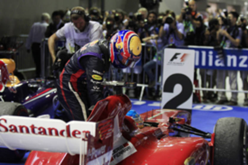 Напомним, что Фернандо Алонсо на своем болиде Феррари подобрал на трассе Марка Уэббера, чей болид загорелся и вышел из строя.