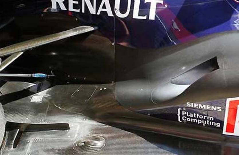 Дело в том, что перед задними колесами на днище болида Ред Булл есть большие вырезы, а согласно регламенту на задней части днища не должно быть никаких отверстий.