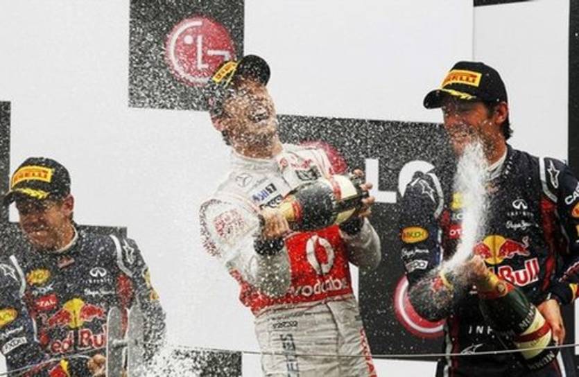 Баттон, тем временем, до последнего метра дистанции давил на лидера гонки Себастьяна Феттеля. На самом последнем круге немец не выдержал, ошибся и пропустил британца к десятой победе в карьере.