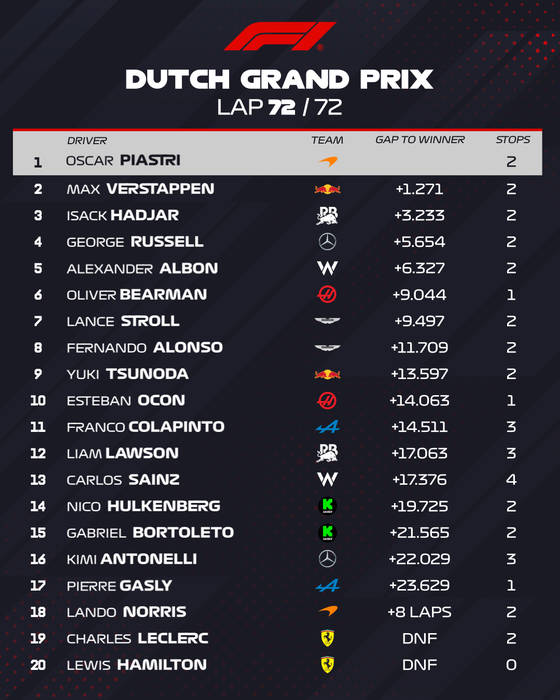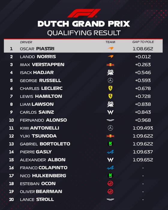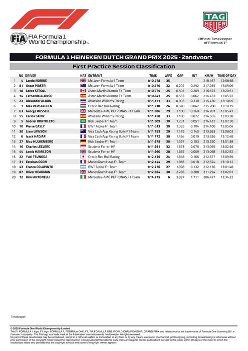 Расписание и результаты заездов Гран-при Нидерландов-2025