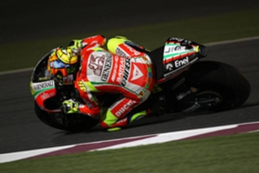 "Я довольно хорошо чувствую байк на твердых покрышках. "Передок" мотоцикла ведет себя вполне нормально. Также Дукати очень быстра на прямых, что не может не радовать. Однако нам нужно немного доработать настройки байка".