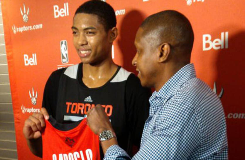 Напомним, что Рэпторс выбрали бразильца на минувшем драфте под итоговым 20 номером. Баскетболист получил майку с пятым номером.