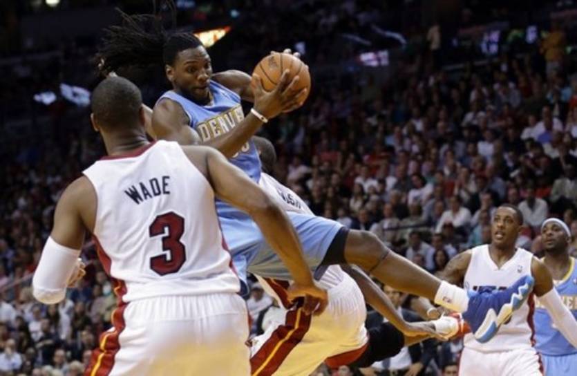 После феерического февраля Майами продолжает кризисный март, проиграв пятый из последних шести матчей. На этот раз Жаркие были биты на своем паркете Денвером, который выиграл всего четвертый из последних 18-ти матчей. Хит впервые с марта 2011 года проиграли два подряд домашних матчах. Снова Джеймс был недостаточно агрессивен в четвертой четверти, а во второй флоридцы вовсе недооценили Денвер, просто прекратив защищаться. Зачастую Хит удается во второй половине установить контроль над матчем. Но в этот раз даже классные рывки с активным участием Андерсена и одна из лучших игр Рэя Алена в текущем сезоне не спасли ситуацию. Большая тройка «стреляла» не лучшим образом, особенно Бош, который на протяжении всего чемпионата был относительно стабилен в этом плане, а за счет Бердмена, Аллена и Чалмерса обыграть Самородков не удалось. Отметим, что Бош и Джеймс на двоих промазали 8 трехочковых бросков. Кеннет Фарид снова выдал классный баскетбол, найдя поддержку у Дэрелла Артура и Фурнье. Гости всякий раз находили силы и энергию на ответы Майами, рывки которого потенциально могли перерасти в камбэк. Хит сумели приблизиться на три очка в самой концовке встречи, но рука Фоя при выполнении штрафных бросков не дрогнула.