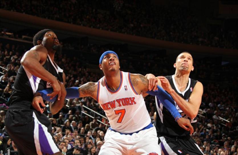 К каким рывкам вы привыкли? 8-0? 11-2? 12-4? Как насчет 46-7? Именно такой спурт выдали Никербокеры в конце первой-начале второй четвертей в домашнем матче против Сакраменто. Большую его часть составили 9 трехочковых в исполнении Смита, Новака, Шамперта, Кидда и Приджиони, которые были дополнены впечатляющей игрой Стаудемайера со скамейки запасных. На счету Амаре сегодня 10 из 10 бросков – самая крупная 100-процентная реализация НБА в этом сезоне. Стат чуть-чуть не дотянул до рекорда клуба, который составляет 11 из 11. Всего максимальное преимущество Никс в этом матче составляло 50 очков, но под конец матча хозяева весьма предсказуемо расслабились, позволив Королям сократить разрыв до «всего лишь» 39 очков.
