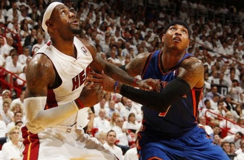 С первых же минут поединка Вудсон решил играть дабл-тим против Джеймса, но Уэйд остался относительно открытым. В отсутствии Имана Шамперта держать Дуэйна фактически некому. Он то, как раз и стал главной бедой гостей. Тем не менее, Джей Ар Смит и Кармело поначалу достойно сражались. Но никак не могли создать какое-то внятное преимущество, та как при малейшей ошибке или потере Хит взвинчивали темп, за которым Никс просто не успевали. Перелом в матче наступил в третьей четверти, когда ЛеБрон, Бош и Чалмерс соорудили рывок 9-2. Джеймс один за другим начал штамповать «эндуаны», правда, точными штрафными они не завершались. Только Бэрону Дэвису удалось не потерять самообладание и настроить своих товарищей на борьбу. Он не только сам атаковал, но и отменно комбинировал с Чендлером. Однако вдвоем против заряженных на победу флоридцев очень тяжело справиться. Явно в свой ритм попал Марио Чалмерса, да и снайперы Хит, которые в начале игры мазали открытые трехи, начали забивать. В свою очередь "бенч" Никс оказался неспособным дать отпор визави. Споэльстра дал команду Баттье переключаться на Новака, когда тот появлялся на паркете, а Джеймс в это время занимался Мело. Новаку так толком и не дали поиграть, а без него только Смит может похвастаться помощью со скамейки.