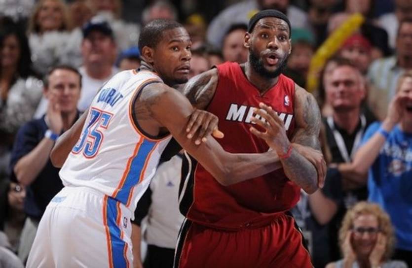 Сумасшедший матч с Миннесотой положительно подействовал и на игроков Оклахомы, в частности на Кевина Дюранта, который был просто неудержим в принципиальном поединке против Майами. После победного, но мрачного и расслабляющего матча с Детройтом флоридцы не смогли перенастроиться и дали бой Громовым только в первой четверти. Во второй 12-минутке пошла череда потерь и неточных бросков, которыми очень качественно и быстро воспользовались хозяева, сформировав двузначный перевес. По итогам первой половины у Оклахомы был 66-процентный показатель бросков с игры. Естественно, при такой точности быстрым отрывам Майами просто неоткуда появится, поэтому Хит и приходилось позиционно атаковать. Жаркие только за две четверти совершили 11 потерь, которые переросли в 12 очков Тандер. С первых же минут поединка подозрительную активность проявлял Кендрик Перкинс, а Сердж Ибака сделал серьезное заявление на результативный матч. Фронт-корт Хит не смог справиться со своими визави, позволив Кендрику набрать 16!! очков. То ли Джеймс поймал мини-кризис, то ли Дюрант был просто на высоте, но один претендент на звание самого полезного игрока сезона не смог закрыть другого явного претендента. Более того, ЛеБрон был малоактивен под щитами и не слишком эффективен в завершении атак. Дуэйн Уэйд и Крис Бош пытались нагнать беглецов, но 11 потерь на двоих нивелировали все их попытки сократить отставание. К тому же Большая тройка не дождалась помощи от скамейки запасных, кроме разве что Юдониса Хаслема. Небольшой спад Тандер в начале третье четверти позволил Хит немного приблизиться к Оклахоме, но очередные провалы в обороне вернули Громовым былой перевес. В четвертой 12-минутке Хит сумели подобраться только на восемь очков, и тот порыв канул в лету. Дюрант сделал серьезную заявку на победу в гонке MVP, раздав очень редкие для себя восемь передач, к которым добавил традиционные девять подборов. Все-таки Лидер Тандер умеет не только набирать очки, но и заигрывать партнеров по команде, за что Перкинс должен быть ему очень благодарен.
