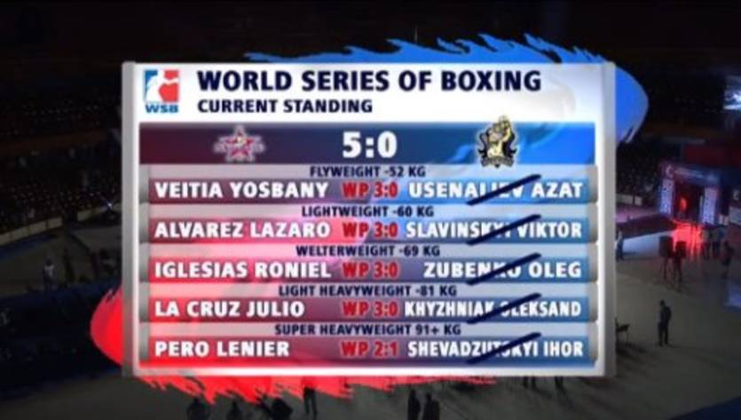 Рониэль Иглесиас Сотолонго "Кубинские укротители" 3:0 (50:44; 50:45; 50:45) Олег Зубенко "Украинские атаманы"