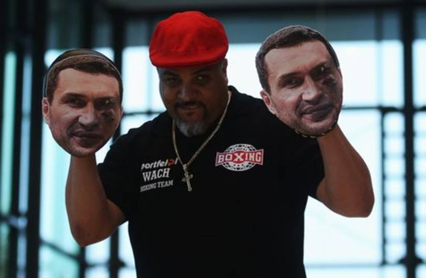 В то время, как украинский чемпион мира провел тренировку в стандартном режиме, его противник решил внести элемент шоу в свои занятия. На тренерские "лапы" наставника Мариуша Ваха были размещены два портрета Владимири Кличко, которые с удовольствием избивал поляк.
