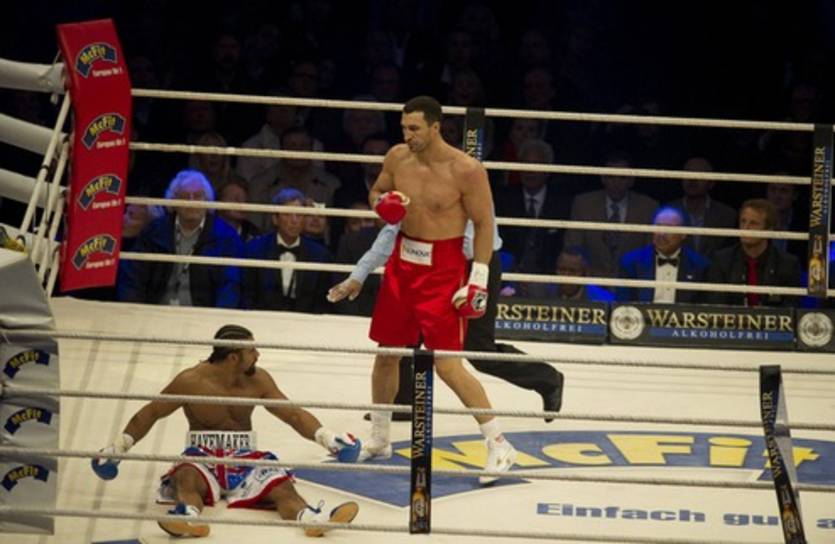 Уже в первом раунде британский боксер оказался на полу, но вины Владимира здесь не было, так как имело место быть банальная потеря равновесия. То ли Дэвиду понравилось, то ли что-то еще, но зрители гамбургской Имтех-Арены еще неоднократно видели Хэймейкера в таком интересном положении. Ах да, в каждом из этих случаев, Владимир оставался не причем.