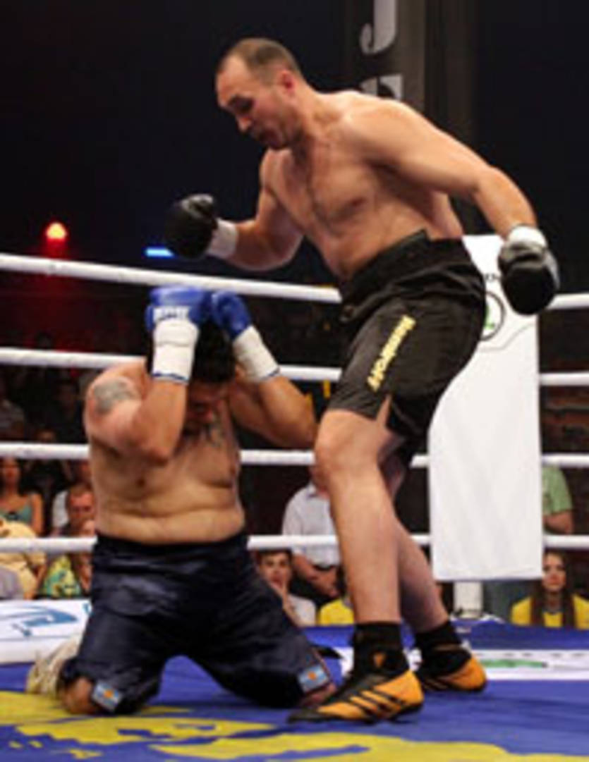 До сих пор непобежденному супертяжу Александру Устинову понадобилось менее половины раунда, чтобы деклассировать своего боливийского коллегу.