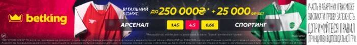 На сайте betking можно поставить на победу Арсенала с коэффициентом 1,47, тогда как потенциальный успех Спортинга оценивается показателем 6,66. Вероятность ничейного результата представлена коэффициентом 4,75. Спортинг в 80% матчей забивает первым, коэффициент на это событие против Арсенала — 3,20.