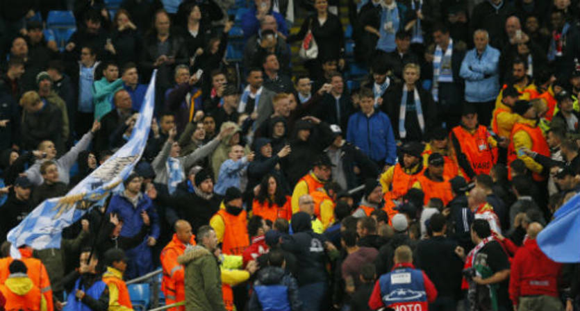 Как стало известно нашим британским коллегам, соответствующая инстанция УЕФА уже открыла дисциплинарное дело в отношении футбольного клуба Манчестер Сити, после того, как их болельщиков обвинили в нескольких попытках перелезть через ограждение в чаше киевского НСК Олимпийский, во время проведения первого матча 1/8 финала Лиги чемпионов Динамо -- МС (1:3).