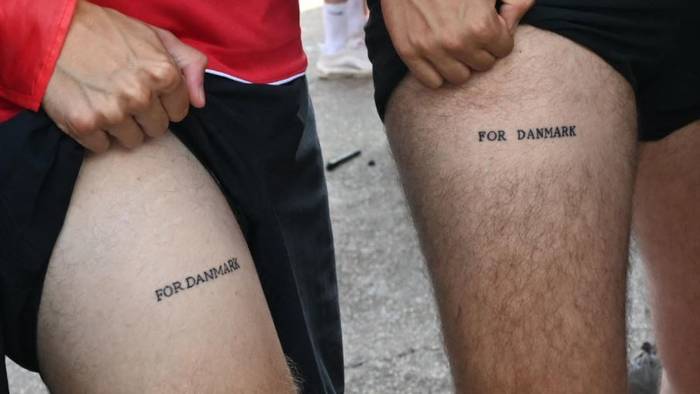 Перед стартом матча чемпионата Европы 2020 между сборными Дании и Чехии четверо фанатов датчан похвастались своими новыми татуировками.