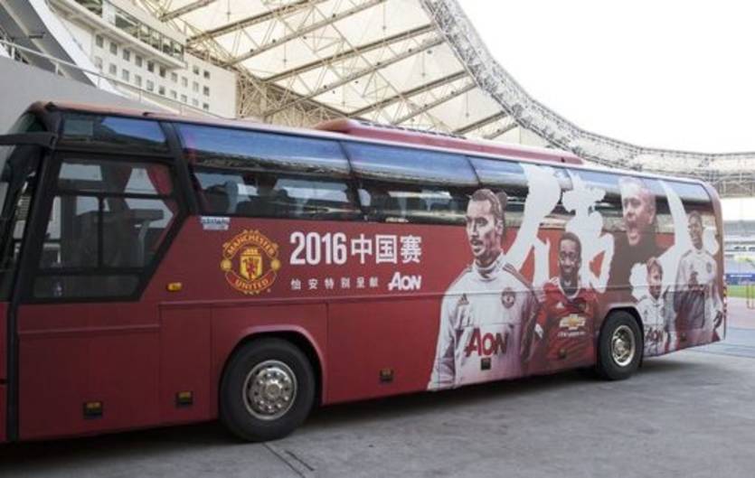Однако изображения футболистов попали на командный автобус Манчестер Юнайтед.