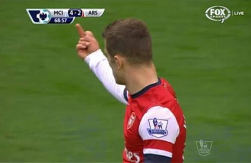 Напомним, что в прошлом туре чемпионата Англии на 68-й минуте Джек Уилшир показал поклонникам Манчестер Сити средний палец.