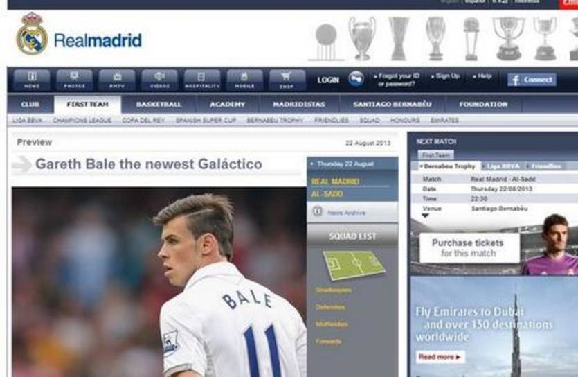 - Более того, официальный сайт королевского клуба поспешил с новостью о том, что валлиец уже стал игроком бланкос, выложив его фото с заголовком "Новый Галактико". Согласно испанским СМИ, о переходе объявят в пятницу, 23 августа.