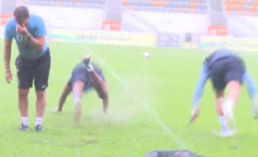 А вот игроки Манчестер Сити настроены более оптимистично. Им завтра необходимо будет играть с Сандерлендом на этом же стадионе, но это нисколько не пугает Горожан, которые изрядно повеселились на "газоне-утопленнике" сегодня. В веселье участовали футболисты и один из работников клуба Лес Чэпмен, после чего была проведена полноценная тренировка.