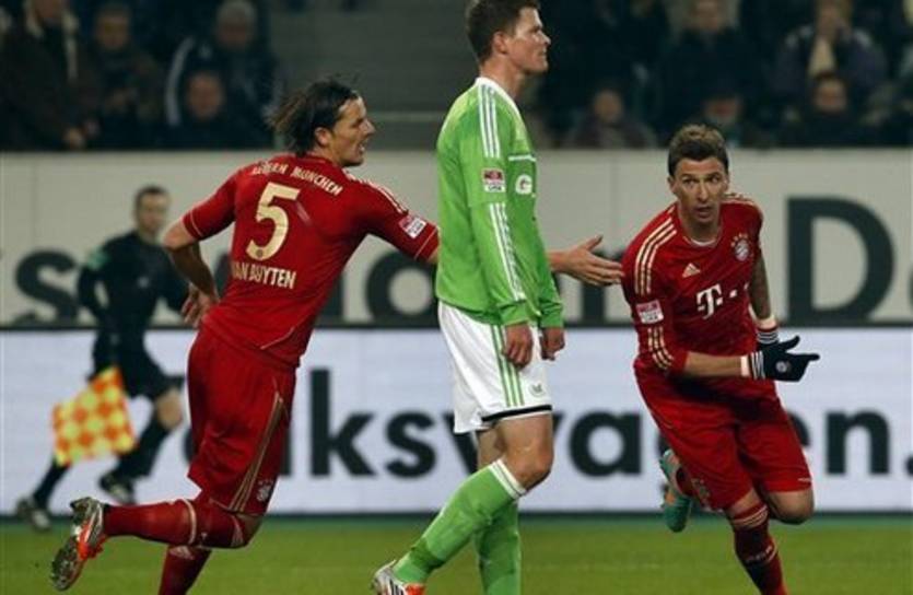 Бавария начала матч бодро; игроки, отсидевшие в прошлом туре в запасе, резво шли в атаку и уже на третьей минуте мяч после навеса Манджукича и последовавшего удара Томаса Мюллера прошел мимо правого угла. А вот мюнхенской защите понадобилось время на раскачку: несколько раз ошиблись оборонцы Баварии при передачах, но на их счастье, Волки не смогли этим воспользоваться. Опасность воротам Нойера несли, в первую очередь, фланговые передачи Шефера в направлении Баса Доста, но то голландец не успевал к мячу, то защитники успевали подчищать. В общем, соперники не стесняясь шли в атаку друг на друга, но стесняясь еще меньше, мешали друг другу организовать что-нибудь по-настоящему опасное.