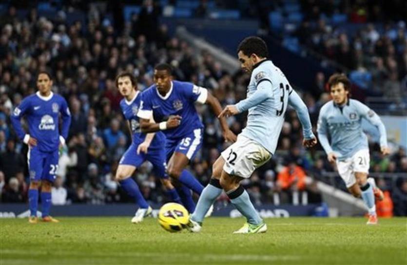 Сити проснулся не сразу, но под конец тайма заработал право на довольно сомнительный пенальти на Джеко (сфолил, что любопытно, все тот же Феллаини). 11-метровый четко реализовал Тевес.