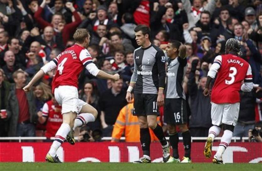 Голы: Мертезакер, 24, Подольски, 42, Жиру, 45+1, Касорла, 60, Уолкотт, 90+1 - Адебайор, 10, Бэйл, 71