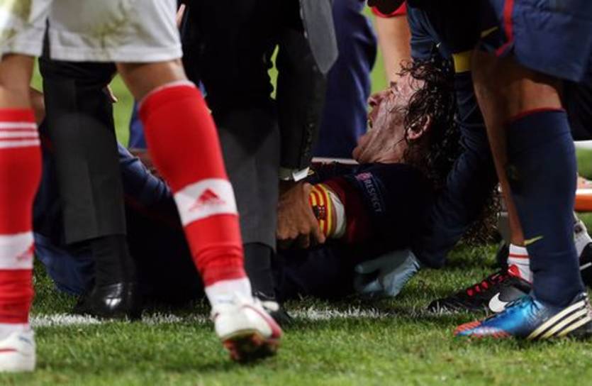 Карлес Пуйоль вынужден был покинуть поле в концовке игры, после того, как неудачно упал на руку.