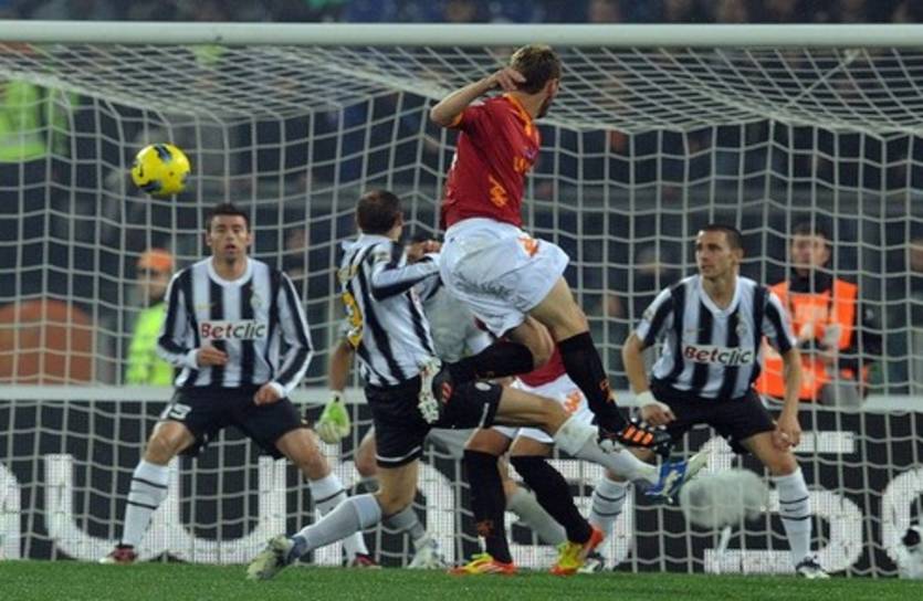 Хозяева повели в счете уже в дебюте встречи. Римляне удачно разыграли угловой и хозяйскую комбинацию замкнул Де Росси. Ювентус мог спасти Видаль, стоявший на штанге, но он просто промазал по мячу – 1:0.