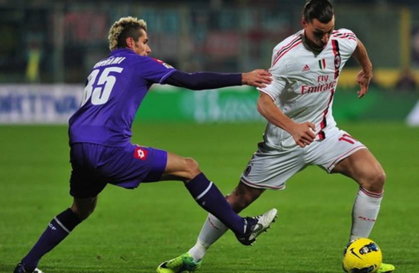 Ход россонери в последнее время набрали чуть ли не чемпионский, и Фиалкам пришлось весьма туго. Еще в первом тайме Ибра и компания могли несколько раз расписаться в воротах Боруца, в то время как Скуадра Виола угрожала рамке гостей изредка.