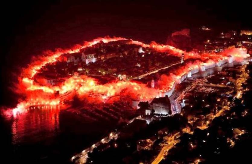 Ну а в Дубровнике местные болельщики клуба создали целое кольцо из огней, создав красивый антураж древней архитектуре города: