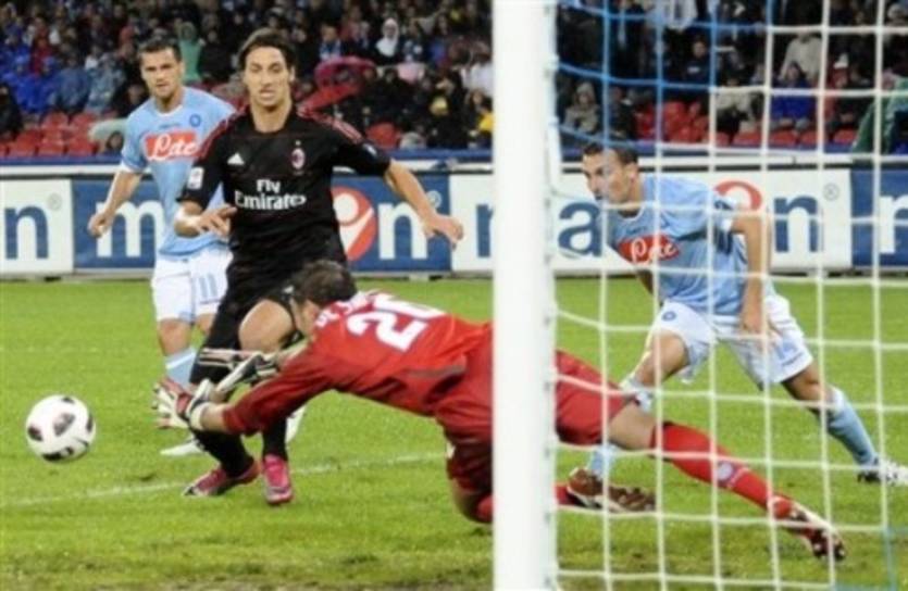 Аббьяти спасает команду после удара Хамшика. И вот когда казалось, что чудо так близко, Милан похоронил интригу. Оддо (вот так вышел резервист) подал с фланга в штрафную и Ибра в полном одиночестве расстрелял Де Санктиса – 0:2. А вот и не похоронил!