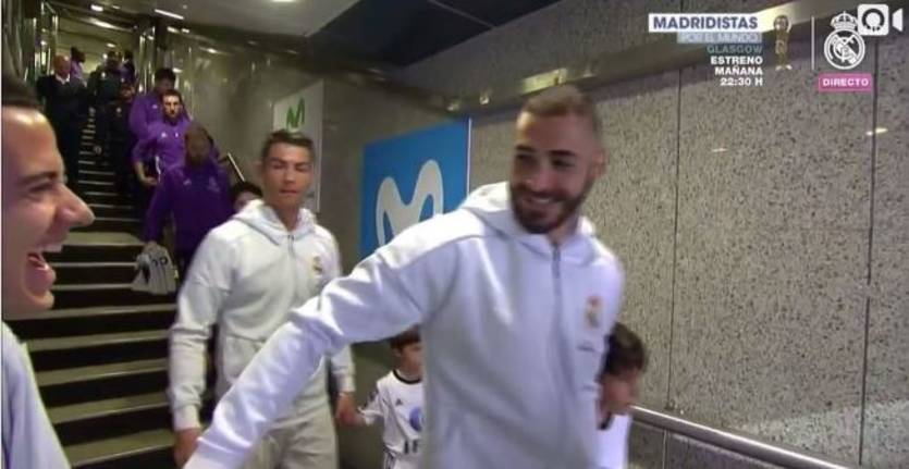 Нападающие мадридского Реала Карим Бензема и Криштиану Роналду перед матчем 29-го тура Примеры с Алавесом подшутили в подтрибунном помещении над своим партнером Лукасом Васкесом.