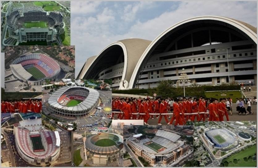 (видимо, чтоб хоть как-то самоутвердится на фоне более успешных "империалистических" соседей) ставились хореографические рекорды. Теперь грандиозные шоу гимнастов на стадионе проводятся достаточно регулярно. Формально он числится домашним стадионом сборной КНДР, но она играет на другом стадионе Пхеньяна.