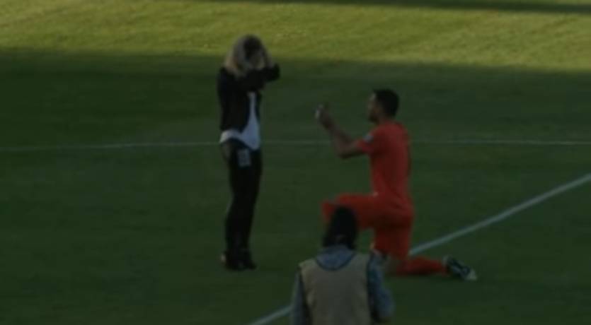 Голкипер сделал предложение своей возлюбленной прямо на поле