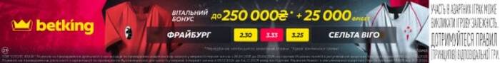 В линии betking на победу Фрайбурга можно поставить с коэффициентом 2,30, тогда как потенциальный успех Сельты оценивается показателем 3,25. Вероятность ничейного результата представлена коэффициентом 3,33. Сельта забивала первой в семи последних матчах Лиги Европы — коэффициент на то, что эта серия продолжится, составляет 2,20.