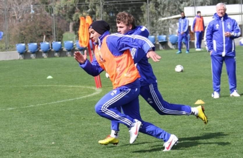 Первую сегодняшнюю тренировку Динамо условно можно разбить на три части. Сперва разминка, затем игровая серия, а под конец – удары по воротам. В занятии не принимали участие три футболиста. Сначала к ранее работавшим по индивидуальной программе Огнену Вукоевичу и Александру Алиеву присоединился Леандро Алмейда. У него воспаление надкостницы голени.