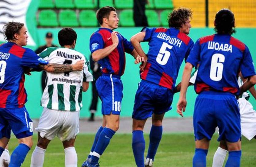 Чуть повеселила публику группка болельщиков Карпаты, которая решила самостоятельно опробовать качество газона на стадионе – другого объяснения поступка фанатов нет. Благо, они быстро ретировались, и проведению матча уже ничего не мешало. Точнее, ничего не мешало невыразительной концовке первой половины игры.