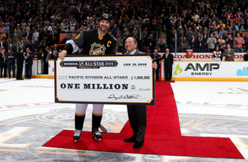 Позаботилась НХЛ и о дополнительной мотивации для хоккеистов. Помимо престижа участия в звездном поединке, на кону решающего матча стоял главный приз - миллион долларов. Этот бонус значительно подстегнул команды, добавил зрелищности и серьезности, что отразилось на результате. Финальная схватка выдалась скупой на шайбы - лишь один гол в исполнении Кори Перри, ставший победным для сборной Тихоокеанского дивизиона. Правда, отсутствие голепада нисколько не смутило публику, которая увидела фееричную игру вратарей и страсть полевых игроков, жаждавших победы. В этом смысле интересно, что победила самая "голодная" команда, сразу трое исполнителей которой зарабатывают меньше миллиона в год.