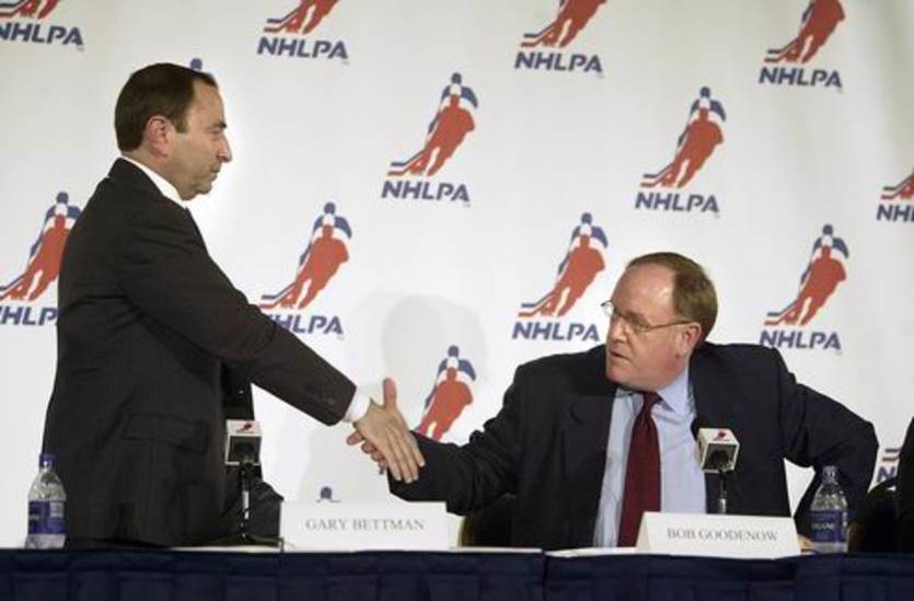 Осенью 2004 года Лига предложила Профсоюзу шесть разных вариантов того, как можно было бы ввести потолок зарплат, но все эти идеи хоккеисты отклонили. Оптимизма переговорам не добавлял и тот факт, что лидер Профсоюза, Боб Гуденоу, был не в лучших отношениях с Гари Бэттменом и некоторыми владельцами клубов. Например, Эд Снайдер, собственник Филадельфии, заявлял в то время следующее: "Я бы точно перепрыгнул через стол, подбежал к нему и задушил насмерть. Конечно, это нехорошо, поэтому я лично не принимал участия в переговорах".