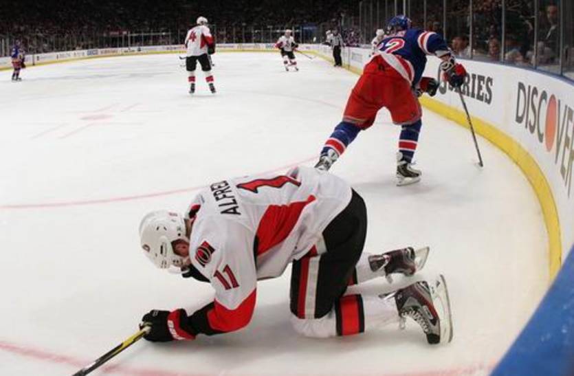 В жесткой игре против Рейнджеров Нью-Йорка Оттава добыла победу, но потеряла форварда Даниэля Альфредссона, покинувшего встречу во втором периоде.