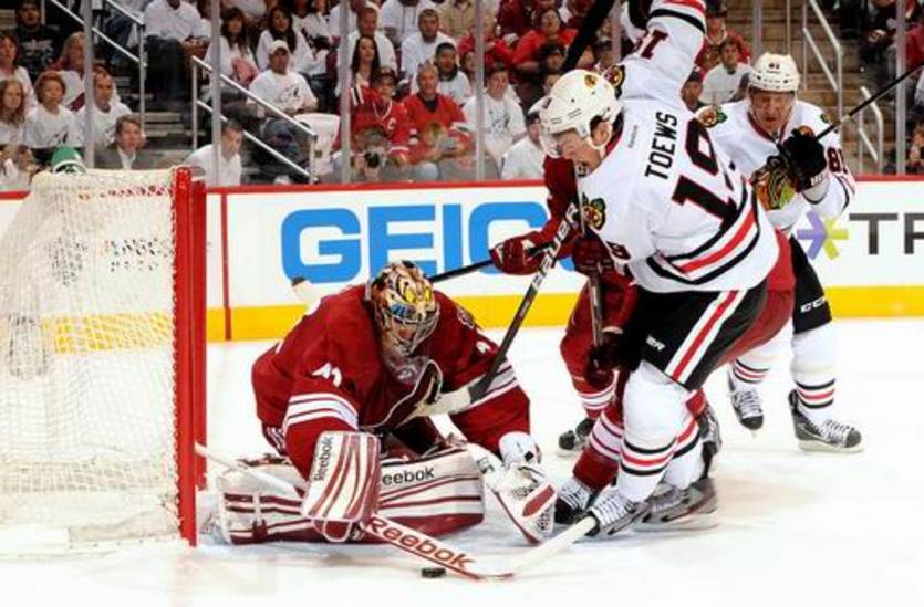 Перед стартом серии с Финиксом представители Чикаго до последнего скрывали состояние здоровья Джонатана Тэйвза, но капитан вышел на лед и успешно действовал в первом звене с Кэйном и Хоссой. Поединок Койотов и Ястребов начался неожиданно живо, на хороших скоростях и с большим количеством силовых приемов. В этом плане старались обе команды, и ценители найдут приличное количество достойных "хитов". Но кроме физической борьбы зрители быстро увидели заброшенную шайбу, и отличился Тэйвз! Причем форвард нанес удар с острого угла, что вроде бы не должно стать проблемой для Майка Смита, однако снаряд пролетел под рукой вратаря.
