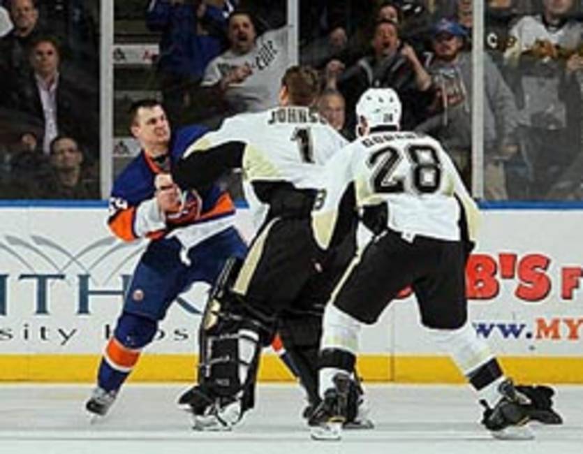 В ходе побоища с Айлендерс Питтсбург потерял тафгая Эрика Годара, которому должны "впаять" 10-матчевую дисквалификацию.