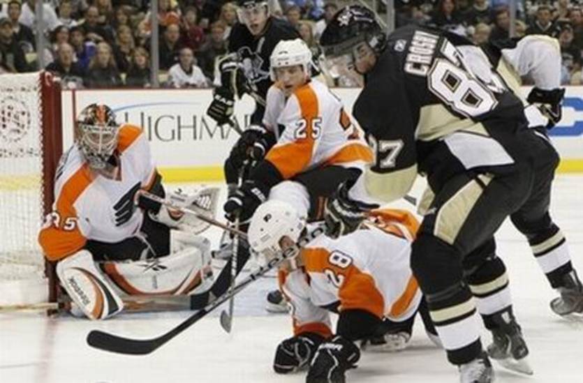 Да, наставник Филадельфии Питер Лавиолетт хвалил молодого российского вратаря Сергея Бобровского, получившего место в команде во время предсезонной подготовки. 22-летний игрок так впечатлил тренерский штаб Флаерс, что стал третьим в истории Филадельфии вратарем-дебютантом, которому доверили начинать сезон. И как начинать - на новой арене Питтсбурга, где хозяева определенно были настроены только на победу.