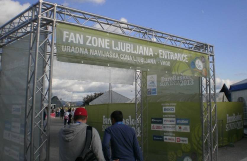 Компания "Телеком Словении" установила в фан-зоне кольцо на высоте шесть (!) метров: