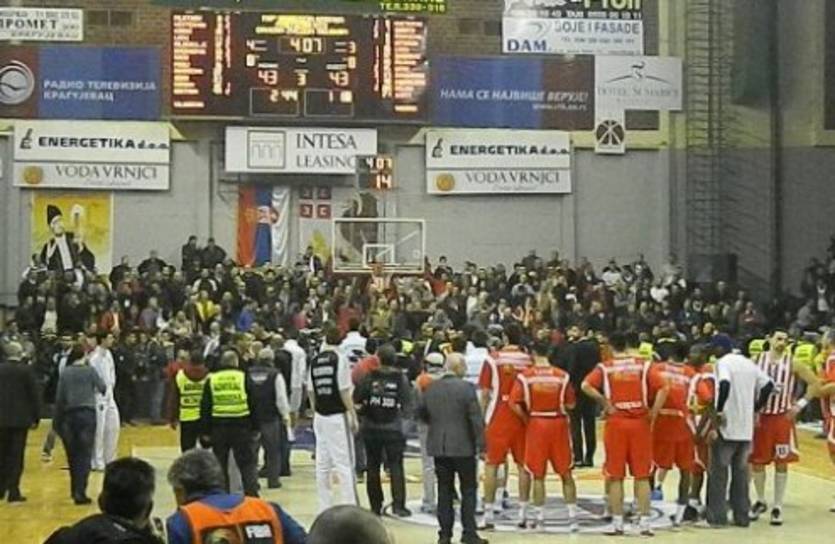 Несмотря огромное количество охраны в зале, внутренние силы не смогли сдержать толпу фанатов, которая за считанные минуты захватила паркет. Вероятнее всего, матч будет доигран сегодня при пустых трибунах.