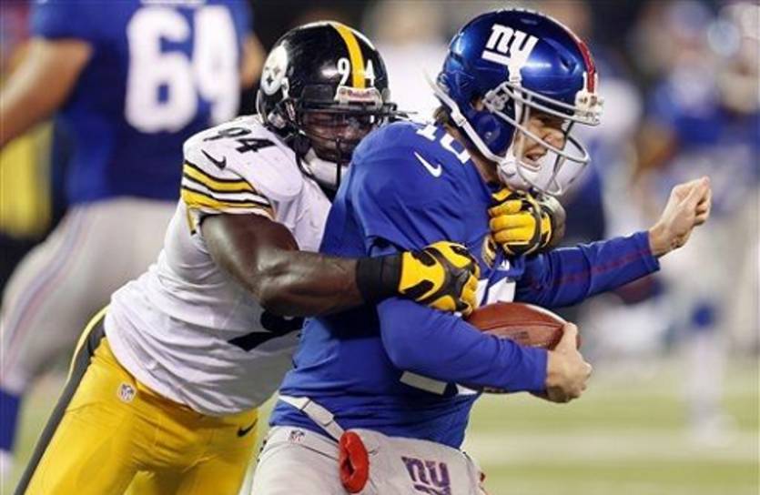Пускай Мэннинг-младший и не сумел порадовать нас очередным камбеком в последней четверти, противостояние Стиллерз и Джайантс все равно оказалось лучшим матчем игровой недели. Конечно, в том случае, если вам нравится смотреть матчи, где кто-то играет в защите. Потому что защиты в этом матче было много. В превью я говорил о том, что Стиллерз – лучшие в НФЛ по защите от паса, и они это более чем красноречиво доказали, сдержав Мэннинга до всего лишь 125 ярдам паса. Если прибавить к этому «впечатляющий» вынос Джи-менов, то в сумме нью-йоркцы за матч набрали целых 193 ярда (за вычетом игры спецкоманд). Ротлисбергер, для сравнения, набросал на 216 ярдов. Но даже такой игры в атаке хватило Биг Блю, чтобы быть впереди в счете почти всю игру. Прежде всего благодаря защитному тачдауну, занесенному Майклом Боули после фамбла Биг Бена. При этом сама потеря мяча квотербеком Сталеваров была более чем противоречива – очень уж тонка была грань между неточным пасом и фамблом. Судьи решили, что мяч покинул руку Ротлисбергера до того, как та начала движение вперед, а значит, тачдаун остается в силе.