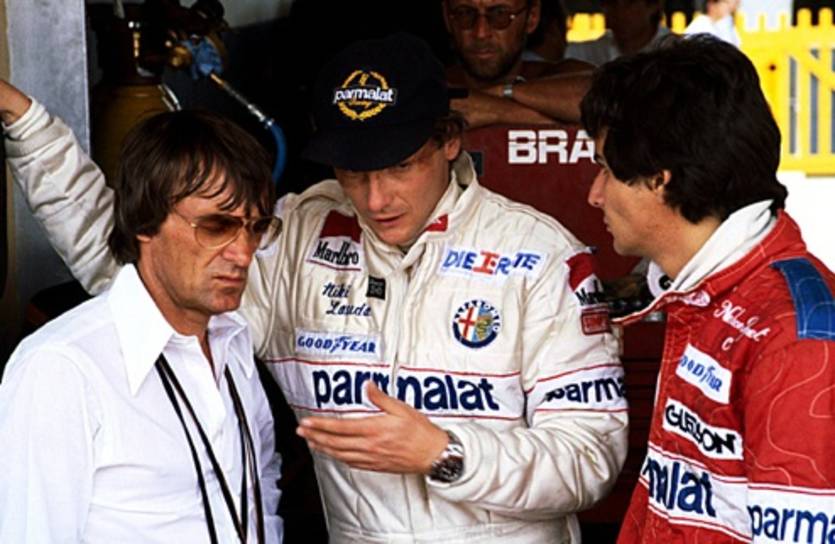 А потом у Алена появилась новая проблема. Из ниоткуда возник Ники Лауда, который стартовал 12-м и шел с другой тактикой дозаправки. Он был легче соперников и, конечно же, легко достиг их. Более того, австриец добрался и до Патрезе, который на первых кругах сильно оторвался от парочки ди Чезариз - Прост. Но Рикардо оказался твердым орешком и Ники Лауда вынужден был отсиживаться за ним, пока таки не поехал на свой пит-стоп.
