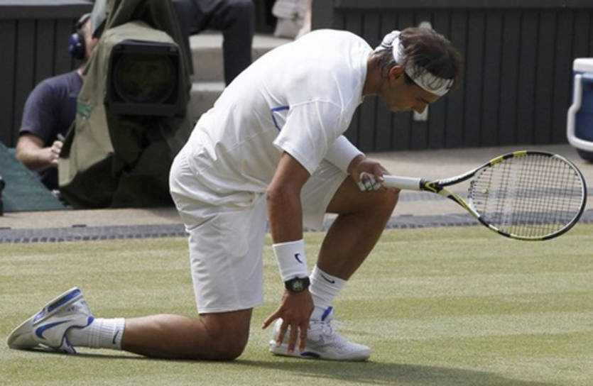 А вот, пожалуй, и главный кадр дня - Рафаэль Надаль сегодня на самом деле оказался на коленях, и вполне резонно и обоснованно уже через несколько часов он потеряет лидерство в мировом рейтинге.