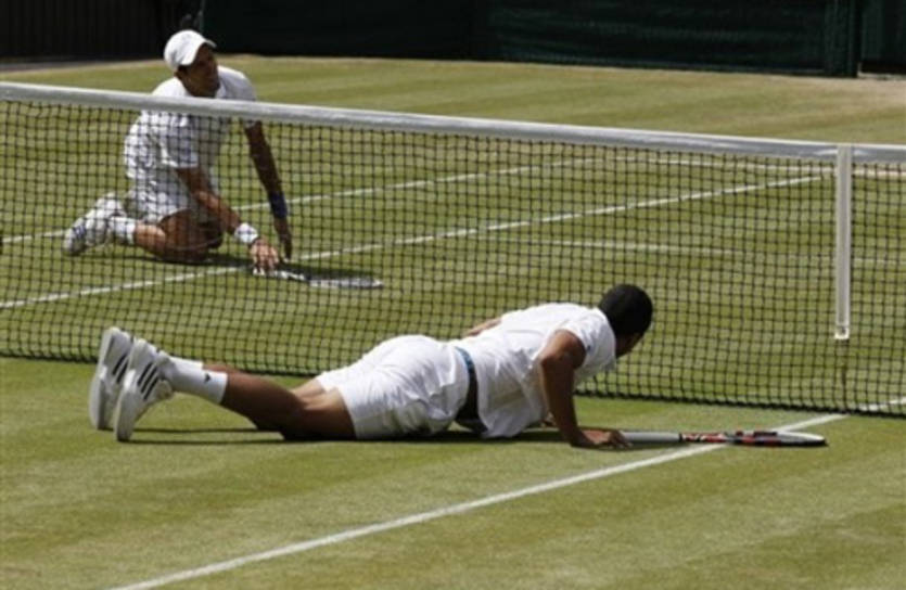 А вот этот момент был одним из самых запоминающихся во втором полуфинале - Рафаэль Надаль пытаясь достать очередной мяч упал, падая подбросил ракетку вверх, но быстро приподнялся и ракетку поймал в руку. Вот это был пилотаж!!!